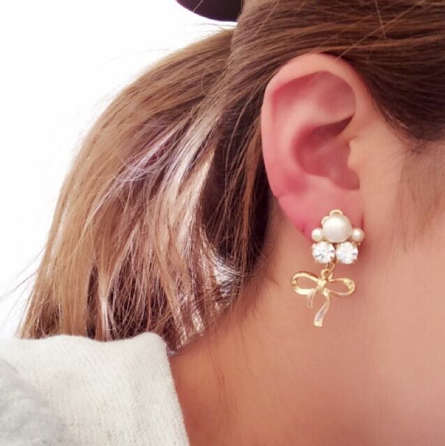 かわいいリボンのチャームがついたピアス(イヤリング)です( ¨̮ )❥❥